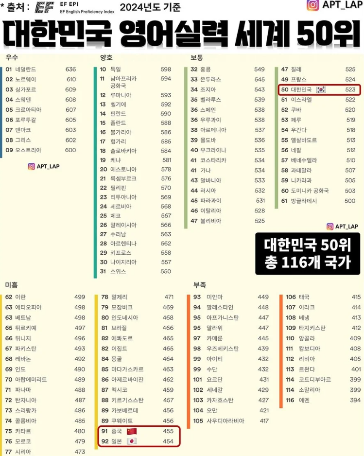 그래도 일본이나 중국보다 높은 순위라니까, 그걸로 충분해.