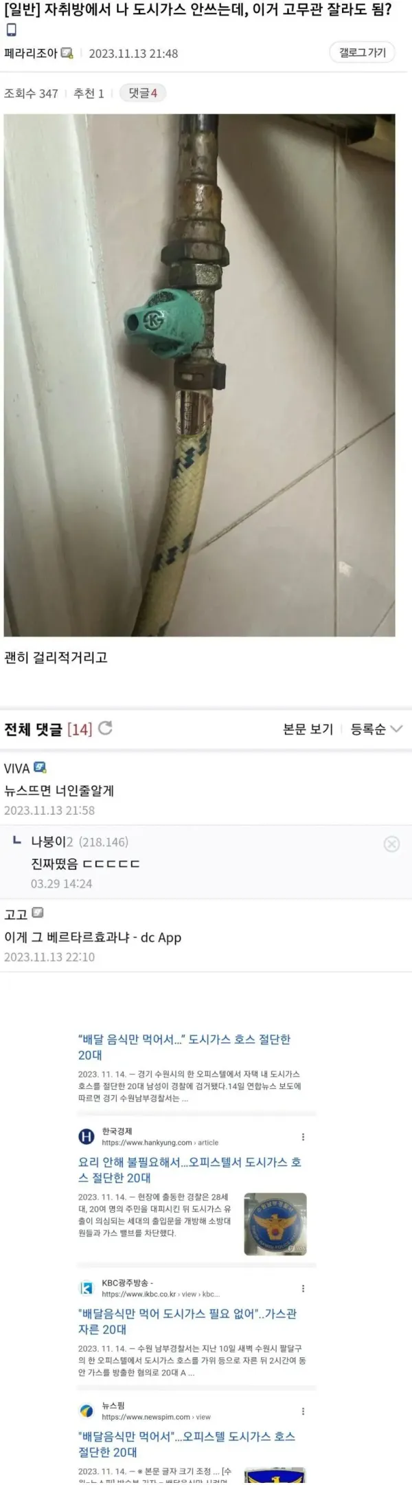 가스 고무관 자르려는 ㄷㄷ