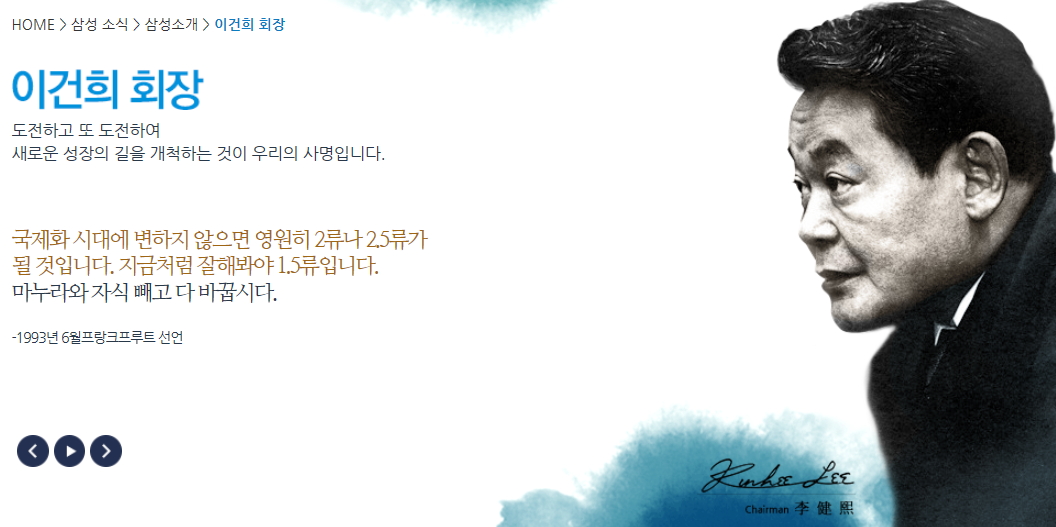 고 이건희 회장님의 어록을 새기며