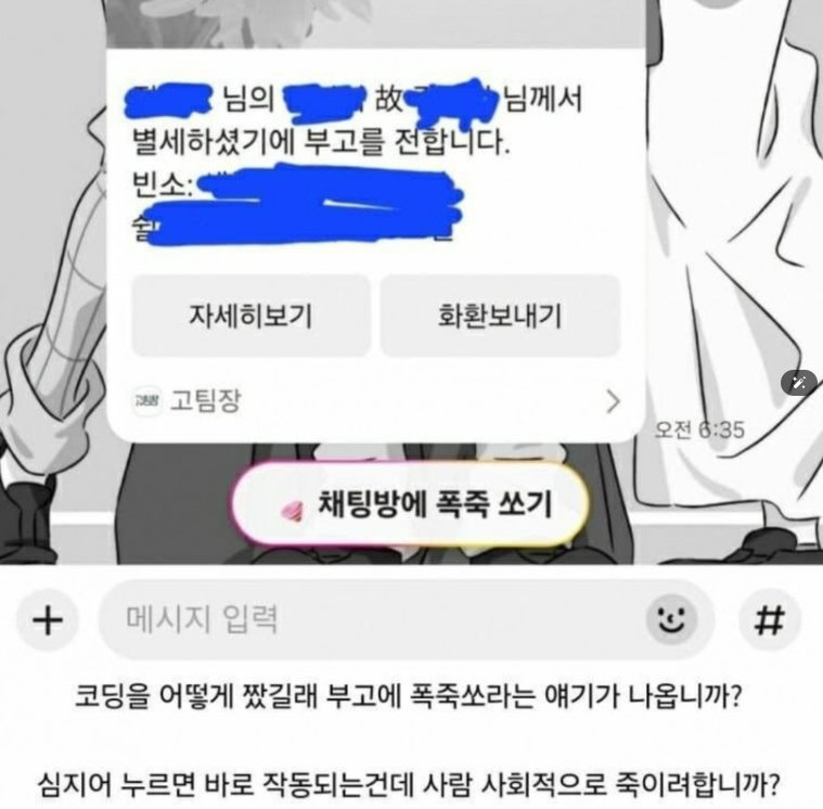 카톡 업데이트 이후 7 스피릿또 0 14 2025.09.30 23:19 단톡방 부고 소식 올라 왔는데바로 아래 폭죽 버튼 실화냐? Author 2 2 Lv.7 7 스피릿또 실버 25,400 (60.4%) 등록된 서명이 없습니다.