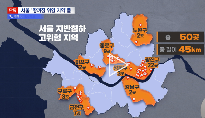 그런데 서울시가 지난해 10월 각 자치구로부터 의견을 받아 '땅 꺼짐' 위험이 높은 50곳의 고위험지역을 정부에 보고한 사실이 MBC 취재를 통해 확인됐습니다.