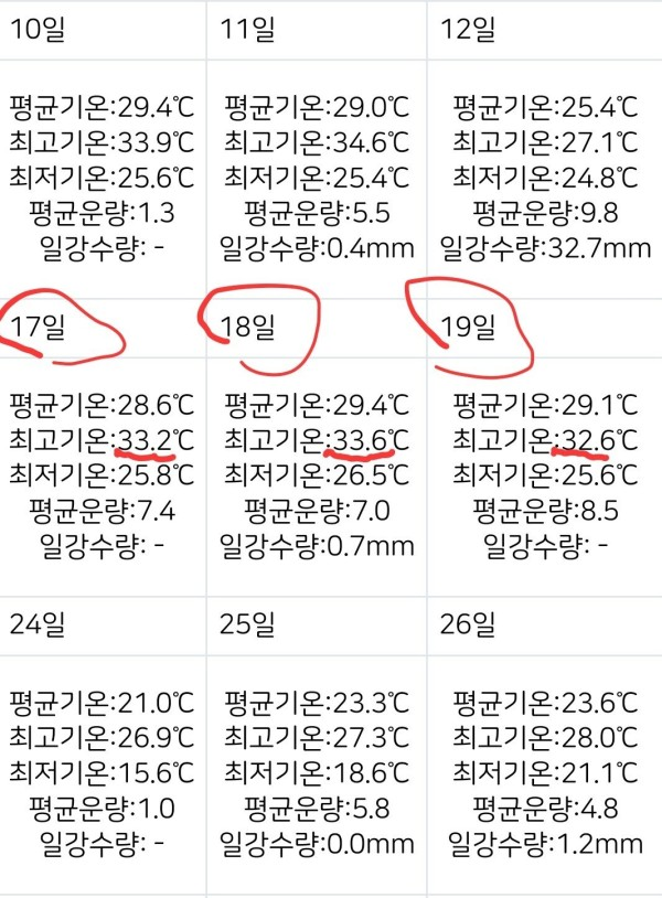 작년 추석 날씨