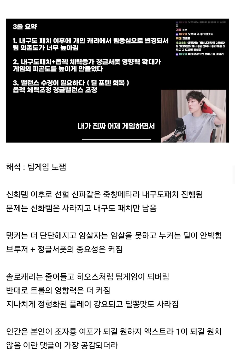 갱맘이 말하는 요즘 롤이 재미 없는 이유.jpg 3 가나다qwer 0 2 2025.05.14 18:09 Author 0 0 Lv.3 3 가나다qwer 골드 7,700 (38.8%) 등록된 서명이 없습니다.