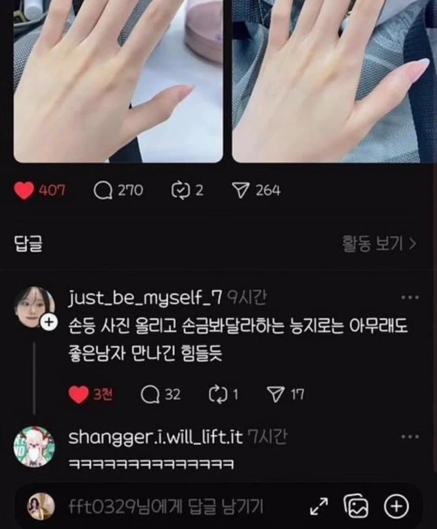올해 나쁜 남자 만나는지 궁금했던 여자 3 LA다정스 0 4 2025.05.25 01:46 Author 0 1 Lv.3 3 LA다정스 최고관리자 8,500 (61.1%) 등록된 서명이 없습니다.