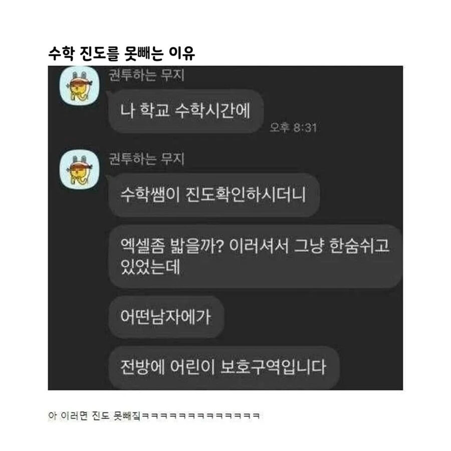 수학 진도 엑셀 밟으려던 선생님ㅋㅋㅋㅋ 3 LA다정스 0 5 2025.06.04 01:48 Author 0 1 Lv.3 3 LA다정스 최고관리자 8,500 (61.1%) 등록된 서명이 없습니다.