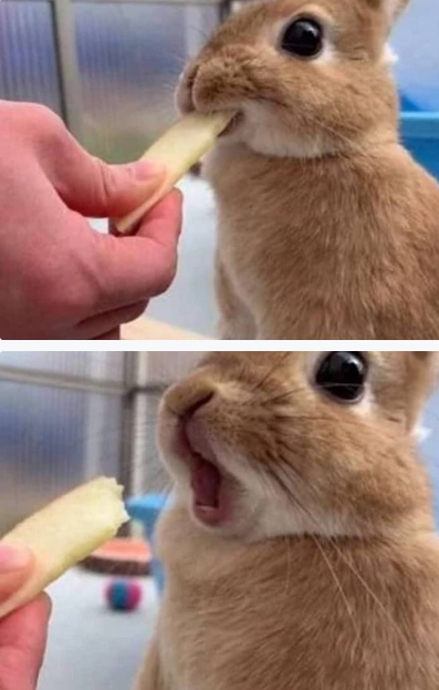 사과가 맛잇어 놀라는 토끼