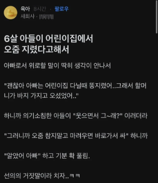 6살 아들이 어린이집에서 실수했다는 소식을 듣고