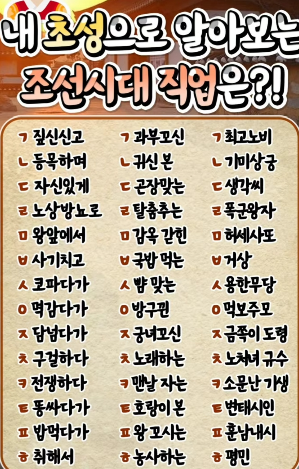 내 이름 초성으로 알아보는 조선시대 직업!! 7 스피릿또 0 4 2025.07.05 23:11 Author 2 2 Lv.7 7 스피릿또 실버 25,400 (60.4%) 등록된 서명이 없습니다.