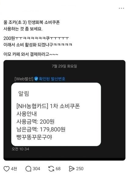 조카카 쓴 민생회복 소비쿠폰 금액