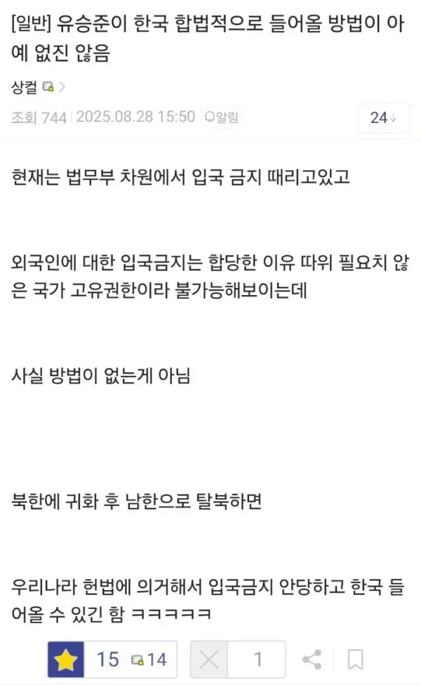유승준이 합법적으로 입국할수잇는 방법