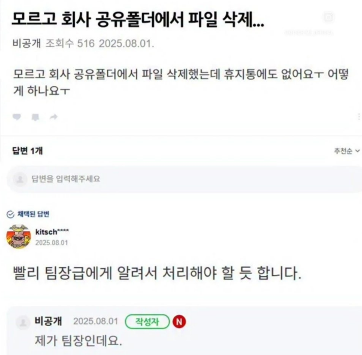 실수로 회살폴더 삭제한 직원은