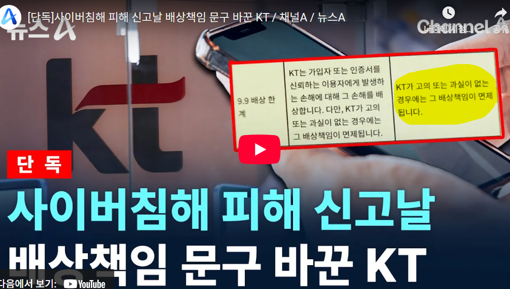 해킹날 배상책임 바꾼 KT