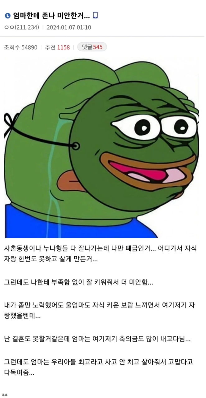 엄마에게 미안한 이유