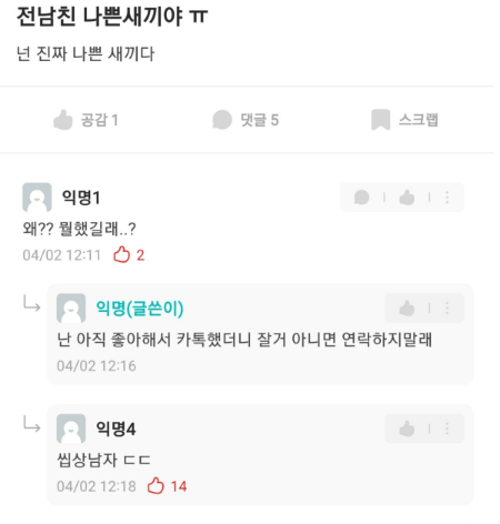전남친 나쁜새끼야 ㅋㅋㅋ