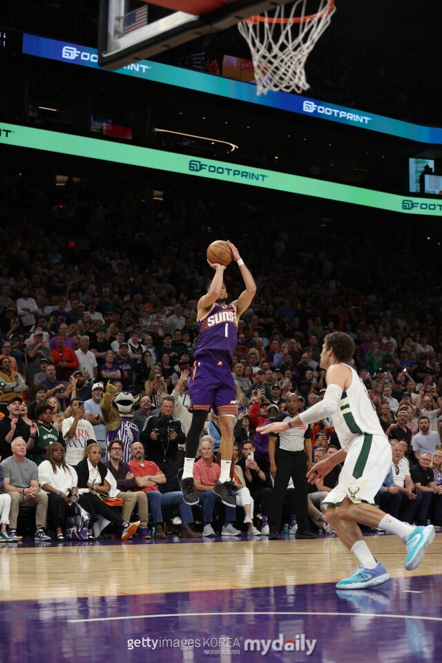 '지구 1옵션'이라는 별명에 걸맞은 활약을 펼쳤다. 피닉스 선즈의 케빈 듀란트(37·미국)가 엄청난 존재감을 발휘하며 소속팀 승리를 책임졌다. 특히, 3점포 7방을 터뜨리며 성공률 77.8%를 찍었다.