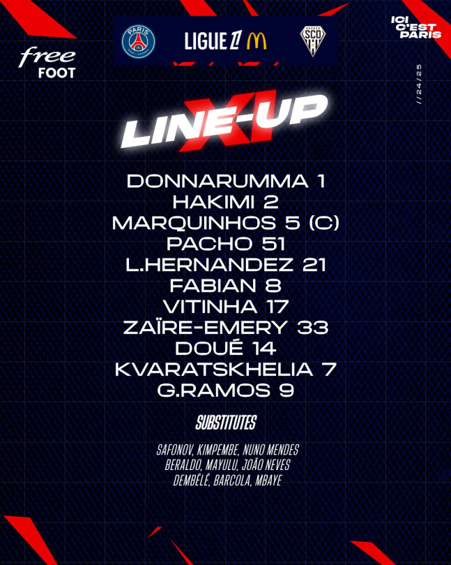 PSG 선발 라인업. PSG SNS