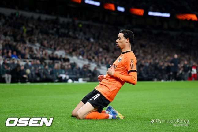 토트넘은 11일(한국시간) 영국 런던 토트넘 홋스퍼 스타디움에서 열린 2024-2025 UEFA 유로파리그 8강 1차전에서 아인트라흐트 프랑크푸르트와 1-1로 비겼다.