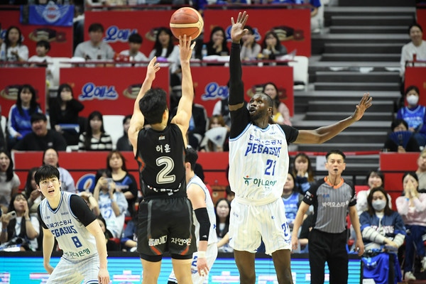대구 한국가스공사 페가수스는 12일 수원 KT 소닉붐 아레나에서 열린 2024-2025 KCC 프로농구 6강 플레이오프 1차전 수원 KT 소닉붐과의 경기에서 67-64로 승리했다.