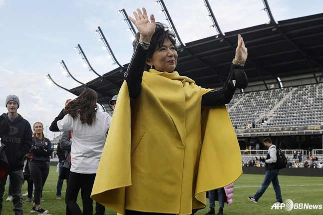미셸 강 회장이 워싱턴 스피릿 구장에서 팬들에게 손인사하고 있다. /AFPBBNews=뉴스1파산 직전의 라이오네스는 미셸 강 회장 체제에서 최상위리그 승격이라는 파란을 일으켰다. 미셸 강은 "적절한 투자만 하면 무엇이든 가능하다는 것을 보여주는 사례"라며 "1년 전부터 라이오네스를 최소 위민스 슈퍼 리그(1부리그) 중위권 팀으로 만들려 했다. 많은 남자팀과 여자팀이 승격했다가 다음 해에 강등되는 걸 봤다"고 전했다.