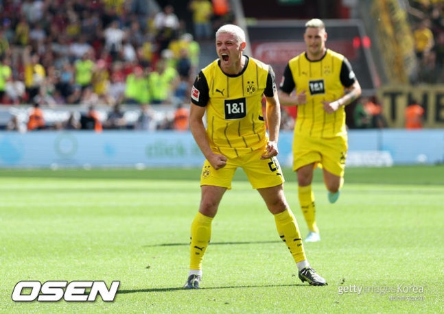 [사진] ⓒGettyimages(무단전재 및 재배포 금지)기세를 탄 도르트문트는 전반 43분 역전까지 성공했다. 율리안 뤼에르손이 동료의 패스를 받아 낮고 빠른 슈팅으로 추가골을 기록했다. 전반전은 도르트문트가 2-1로 앞선 채 마무리됐다.