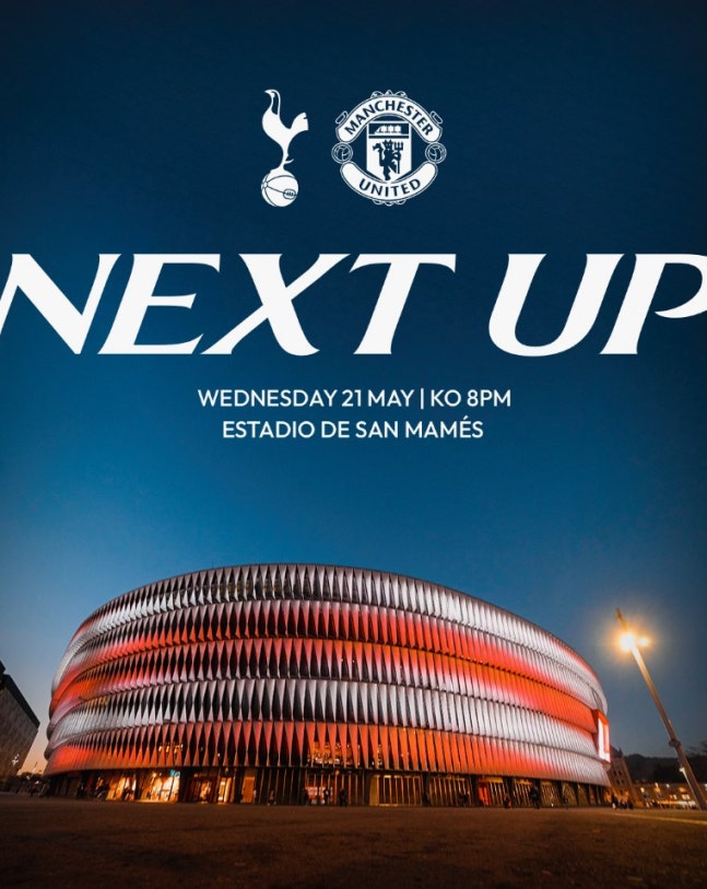 토트넘은 오는 22일(한국시간) 오전 4시 스페인 빌바오에 위치한 에스타디오 산 마메스에서 프리미어리그 경쟁팀인 맨체스터 유나이티드와 2024-25시즌 유럽축구연맹(UEFA) 유로파리그 결승전을 치른다.