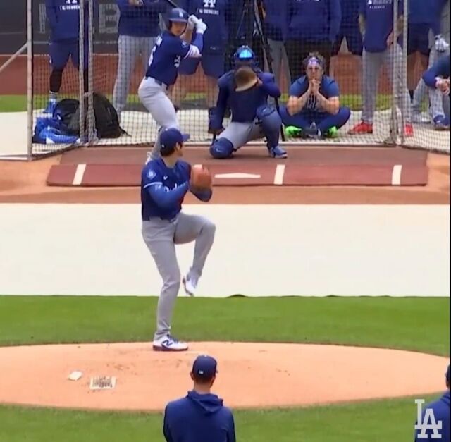 2023년 9월 토미존 수술을 받은 오타니는 순조롭게 재활을 했고, 이날 첫 라이브피칭을 소화했다.