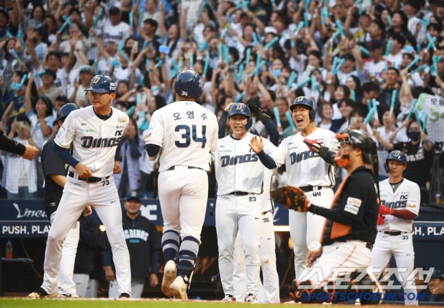 양 팀 모두 쉽사리 점수를 내지 못한 채 5회까지 흘러갔다. 6회말 NC가 짜릿한 한 방으로 경기를 뒤집었다. 2사 후 권희동의 2루타와 김휘집의 볼넷, 천재환의 몸 맞는 공으로 2사 만루를 만들었다.