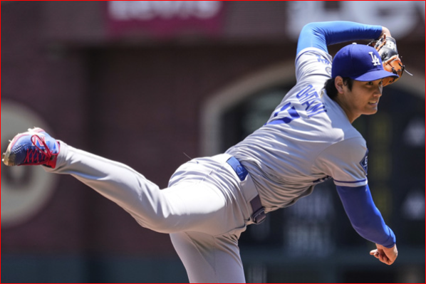 LA다저스 투타 겸업 선수 오타니는 13일(한국시간) 미국 캘리포니아주 샌프란시스코의 오라클파크에서 열린 샌프란시스코 자이언츠와 원정경기 선발 등판, 3이닝 1피안타 1볼넷 4탈삼진 무실점 기록했다.