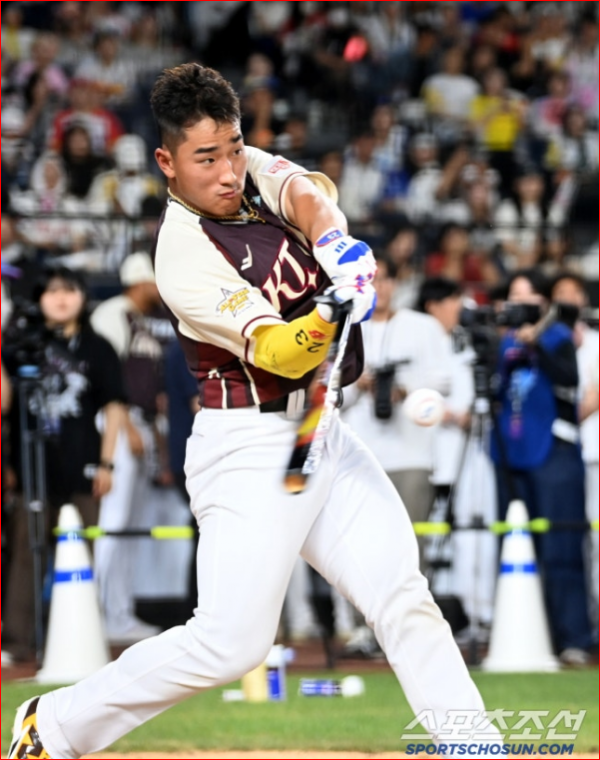 안현민은 올시즌 개막 후 혜성같이 나타나 KT 3번 자리를 꿰찼다. 근육질 몸에서 터져나오는 엄청나게 강한 타구로 팬들의 속을 뻥 뚫어준다. 그냥 홈런이 아니다. 맞으면 비거리 130m라는 '농반진반' 얘기가 나오기 시작했다. 타율 3할5푼2리 16홈런 53타점. 최근 압도적 홈런 선두 디아즈(삼성)와 LG 트윈스 4번타자 문보경이 '안현민 리스펙트'에 나섰다. 디아즈는 "내가 본 선수중 최고의 파워"라고 극찬했고, 문보경은 경기 중 안현민의 몸을 직접 만져보기까지 했다.