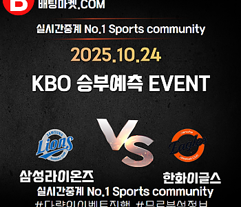 25.10.24 [KBO ] 한화이글스 VS 삼성라이온즈 ★ 승/패+언더/오버 승부예측 이벤트 !