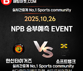 25.10.25 [NPB ] 소프트뱅크 VS 한신 ★ 승/패+언더/오버 승부예측 이벤트 !