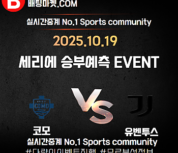 ★ 10월 19일[세리에] 코모 VS 유벤투스 승/패★ 10월 19일 [세리에] 코모 VS 유벤투스언더/오버★총 상금5,300P★승패/언더오버 를 정확히 맞춰주신 당첨자 분들께규정…