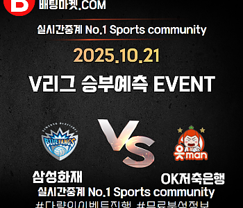 25.10.21 [V리그 ] 삼성화재 VS OK저축은행 ★ 승/패+언더/오버 승부예측 이벤트 !