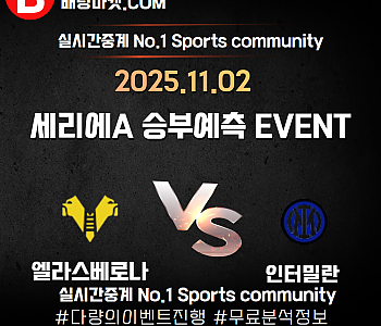 25.11.02 [세리에A] 엘라스베로나 VS 인터밀란 ★ 승/패+언더/오버 승부예측 이벤트 !