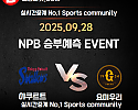 ★ 09월 28일[NPB] 요미우리 VS 야쿠르트 승/패★ 09월 28일 [NPB] 요미우리 VS 야쿠르트언더/오버★총 상금5,300P★승패/언더오버 를 정확히 맞춰주신 당첨자 분…