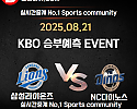 ★ 08월 21일[KBO] NC다이노스 VS 삼성라이온즈 승/패★ 08월 21일[KBO] NC다이노스 VS 삼성라이온즈언더/오버★총 상금5,300P★승패/언더오버 를 정확히 맞춰주…