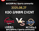 ★ 08월 27일[KBO] NC다이노스 VS LG트윈스 승/패★ 08월 27일[KBO] NC다이노스 VS LG트윈스언더/오버★총 상금5,300P★승패/언더오버 를 정확히 맞춰주신 …