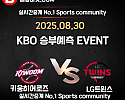 ★ 08월 30일[KBO] LG트윈스 VS 키움히어로즈 승/패★ 08월 30일 [KBO] LG트윈스 VS 키움히어로즈언더/오버★총 상금5,300P★승패/언더오버 를 정확히 맞춰주신…
