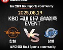 ★ 08월 29일[KBO] 한화이글스 VS 삼성라이온즈 승/패★ 08월 29일[KBO] 한화이글스 VS 삼성라이온즈언더/오버★총 상금5,300P★승패/언더오버 를 정확히 맞춰주신 …