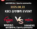 ★ 08월 22일[KBO] 기아타이거즈 VS LG트윈스 승/패★ 08월 22일[KBO] 기아타이거즈 VS LG트윈스언더/오버★총 상금5,300P★승패/언더오버 를 정확히 맞춰주신 …