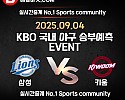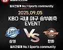 ★ 09월 03일[KBO] 삼성라이온즈 VS 키움히어로즈 승/패★ 09월 03일 [KBO] 삼성라이온즈 VS 키움히어로즈언더/오버★총 상금5,300P★승패/언더오버 를 정확히 맞춰…
