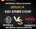 ★ 07월 19일[KBO] 기아타이거즈VS NC다이노스 승/패★ 07월 19일[KBO] 기아타이거즈VS NC다이노스언더/오버★총 상금5,300P★승패/언더오버 를 정확히 맞춰주신 …
