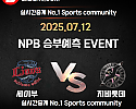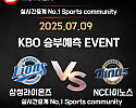 ★ 07월 09일[KBO] NC다이노스VS 삼성라이온즈 승/패★ 07월 08일[KBO] NC다이노스VS 삼성라이온즈언더/오버★총 상금5,300P★승패/언더오버 를 정확히 맞춰주신 …