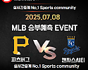 ★ 07월 08일[MLB] 피츠버그VS 캔자스시티 승/패★ 07월 08일[MLB] 피츠버그VS 캔자스시티언더/오버★총 상금5,300P★승패/언더오버 를 정확히 맞춰주신 당첨자 분들…