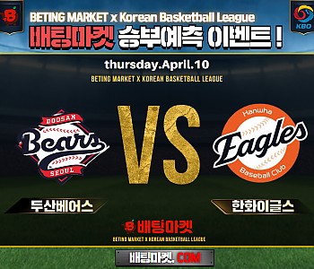 ★ 04월 10일 [ KBO ] 두산베어스 VS 한화이글스 승/패★ 04월 10일 [ KBO ]두산베어스 VS 한화이글스언더/오버★총 상금5,300P★승패/언더오버 를 정확히 맞춰…