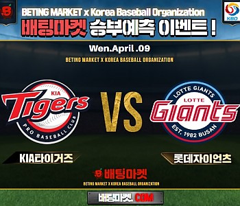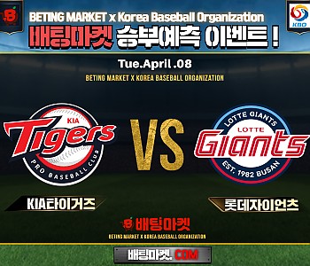 ★ 04월 08일 [ KBO ] KIA타이거즈VS 롯데자이언츠 승/패★ 04월 08일 [ KBO ] KIA타이거즈VS 롯데자이언츠언더/오버★총 상금5,300P★승패/언더오버 를 정…