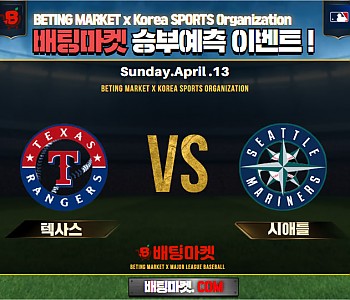 25.04.13 [MLB리그] 텍사스 VS 시애틀 승/패+언더/오버 승부예측 이벤트 !