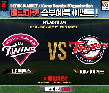 ★ 04월 04일[ KBO ] LG트윈스 VS KIA타이거즈 승/패★ 04월 04일[ KBO ] LG트윈스 VS KIA타이거즈언더/오버★총 상금5,300P★승패/언더오버 를 정확히…