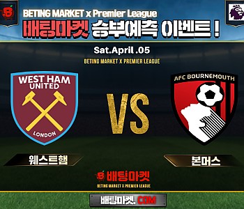 25.04.05 [ 프리미어리그 ] 웨스트햄 유나이티드 VS AFC본머스 ★ 승/패+언더/오버 승부예측 이벤…