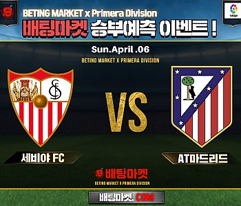 ★ 04월 06일[프리메라리가] 세비야FC VS AT마드리드승/패★ 04월06일[프리메라리가] 세비야FC VS AT마드리드언더/오버★총 상금5,300P★승패/언더오버 를 정확히 맞…